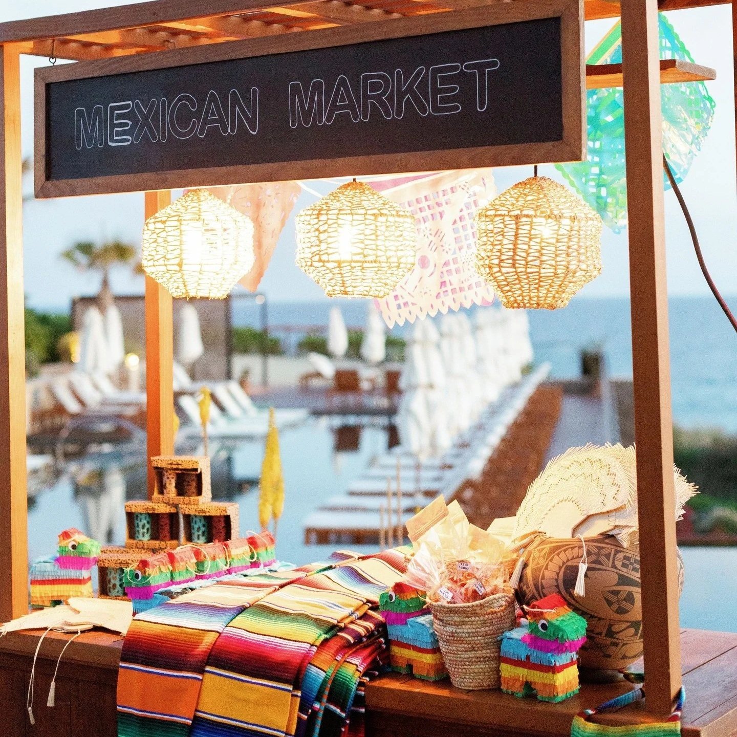 For their welcome dinner experience on Cuevas Beach, we brought the essence of a traditional Mexican mercado to life. Against the backdrop of a breathtaking sunset and accompanied by festive décor, live music (a blend of folkloric and modern tunes), and handcrafted cocktails, guests explored ten immersive market stations, including: